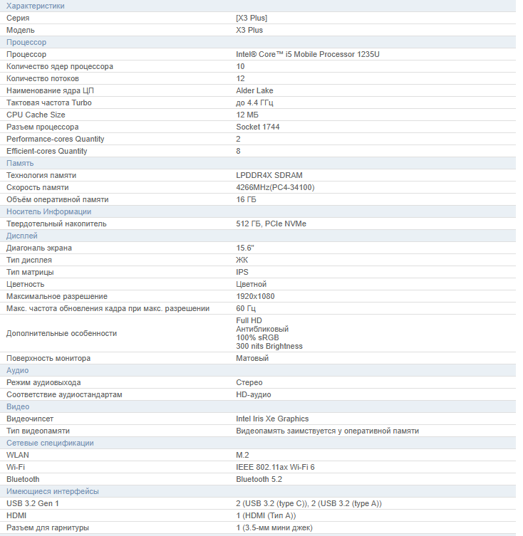 —Ноутбук INFINIX Inbook X3 PLUS XL31 i5-1235 16 512 W11h,арт.71008301217
